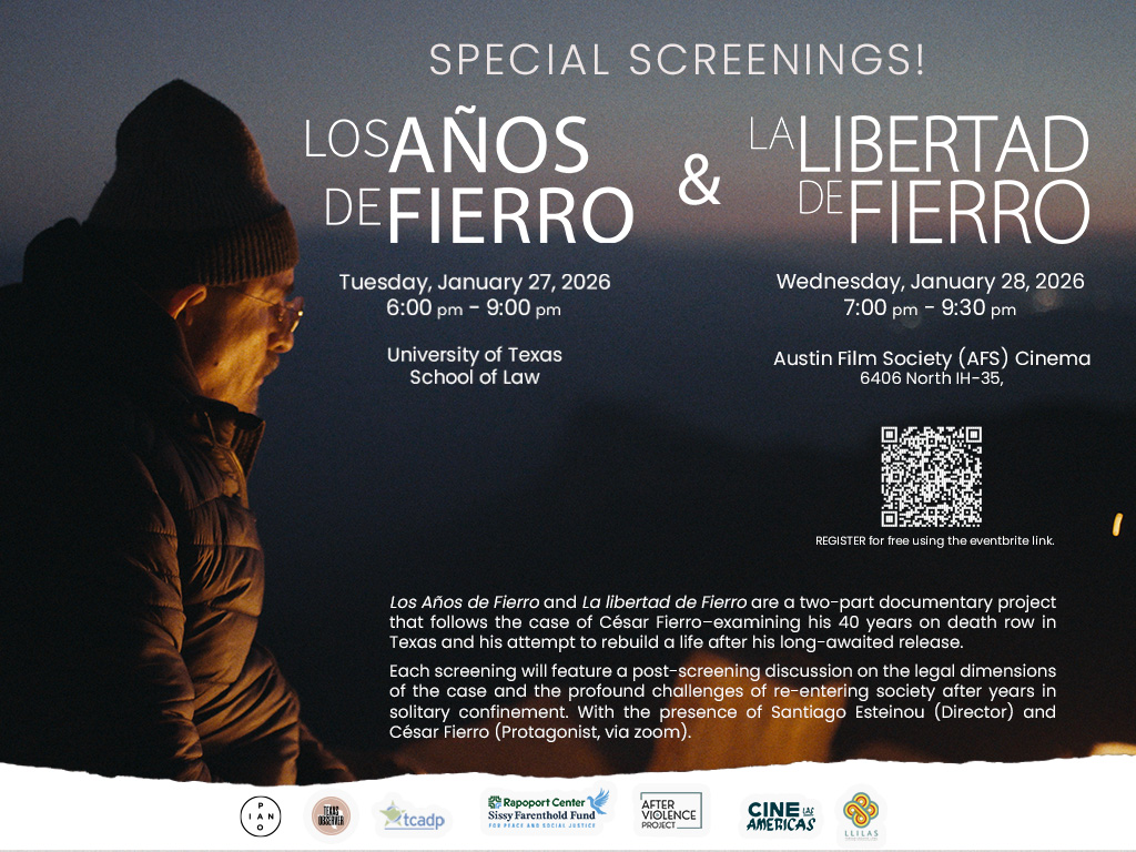 Co-sponsors of these events include the Teresa Lozano Long Institute of Latin American Studies (LLILAS), Cine Las Americas, the Texas Observer, TCADP, the After Violence Project, and the Capital Punishment Clinic at the University of Texas School of Law.